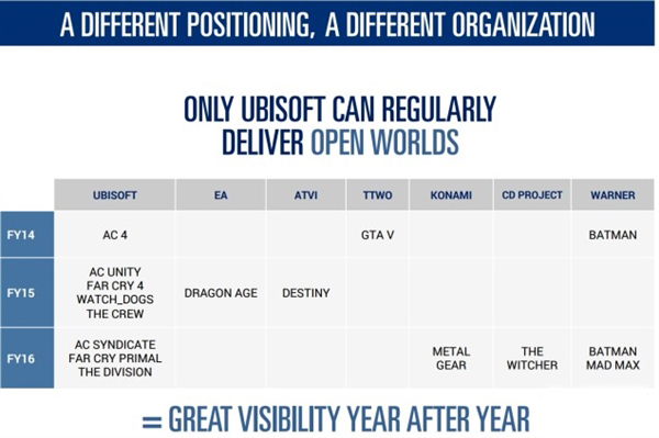 在最近的媒體探班日上,育碧表示,開放類的沙盤游戲越來越受到玩家們的歡迎,雖然此前已經(jīng)有相當多出色的沙盤游戲,不過和育碧比起來都是小巫見大巫,放眼宇宙,只有育碧才有能力做出這種類型的游戲。