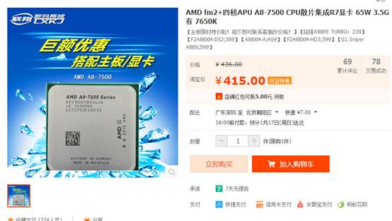 隨著元宵佳節(jié)的煙火即將熄滅,人們又踏上了猴年的新征程。在這開工大吉的好時刻,相信廣大玩家一定開始著手選購得心應(yīng)手的電腦來應(yīng)對即將到來的學(xué)習(xí)生活。我們知道隨著電腦硬件的高速發(fā)展,人們開始熱衷于選擇整合平臺來武裝自己的主機(jī),主要是因為整合平臺具有更好的穩(wěn)定性和節(jié)約功耗等特點(diǎn)。而說到整合平臺我們一定要了解一下AMD A8-7500 APU,其具有高主頻、真四核、自動超頻等特性,同時它的TDP最低可以降至45W,并且其內(nèi)建的Radeon R7獨(dú)顯級核心,對Win10與DX12全面支持。目前A8-7500淘寶售價僅有415元,如此高的性價比,玩家們可以不用猶豫,火速訂購了!