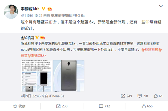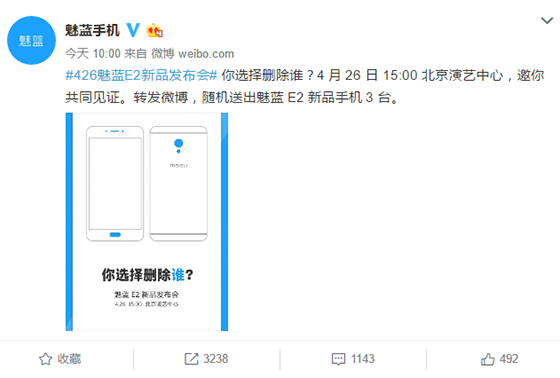 李穎坤 / 2017-04-12 11:27202126今天上午十點,@魅藍手機 官方在微博上公布了新品魅藍E2的發布時間。從這條微博文案中我們可以獲取一些關于新品的相關信息,除了知道它將在4月26日北京演藝中心發布之外,還能了解到這次的魅藍新機將一改以往的套娃設計。而魅族科技副總裁也在微博上聲稱:這個月有魅藍發布會,但不是這個魅藍 5x。新品是全新外觀,還有一些非常有趣的設計。