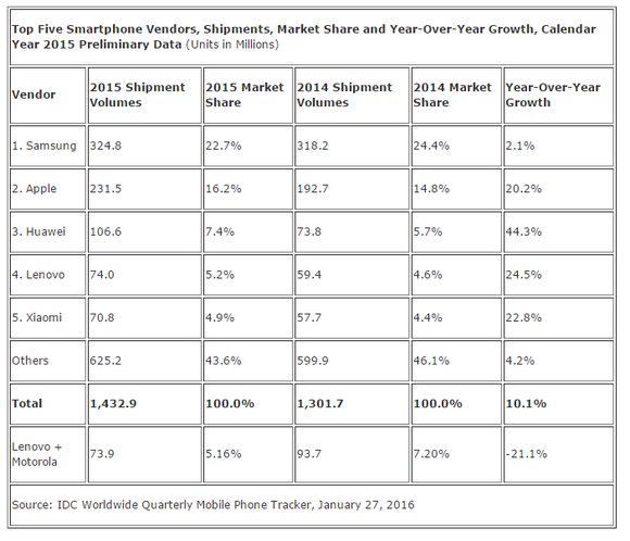 然而,小米的光環被同為中國廠商的華為被掩蓋,后者智能手機出貨量同比增長44.3%。當小米在2014年發展順風順水時,有觀點認為該公司可能最終將超越蘋果和三星電子,這種情況不僅是在中國,而且可能是在全球。小米雖然計劃在近期向西歐市場進軍,但總體向外擴張有限,在經歷令人失望的2015年后,其超過全球領先智能手機制造商的可能性越來越小。