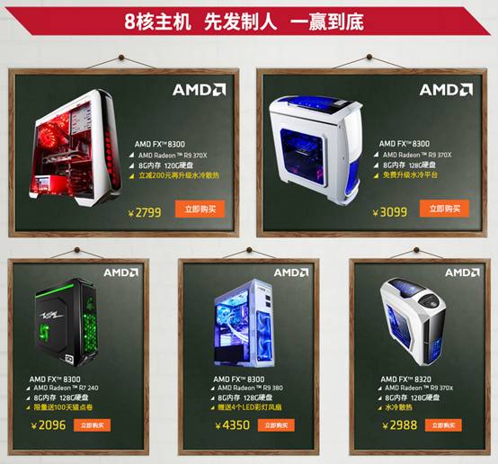 另外,還有多款不同配置的AMD FX 8300八核獨顯主機可限量免費升級固態硬盤、內存、水冷散熱平臺以及贈送天貓點劵、彩燈風扇和鍵鼠套裝,實惠應有盡有。