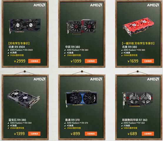 此外,本次開學季活動不僅有主機,還有多款超高規格的R9 370、R9 380、R390X游戲顯卡以學生專享價提供給學生朋友們。產品價格和配置詳情請到AMD天貓品牌站開學季活動頁面里了解。