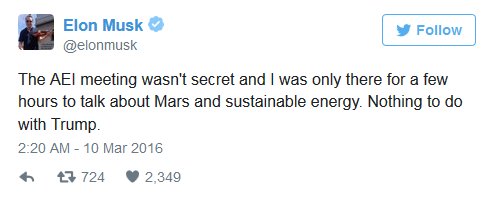 馬斯克表示,雖然自己確實(shí)不太喜歡特朗普這種大嘴巴,但他們只是在會(huì)議上討論火星問題和可持續(xù)新能源的發(fā)展和建設(shè)問題。