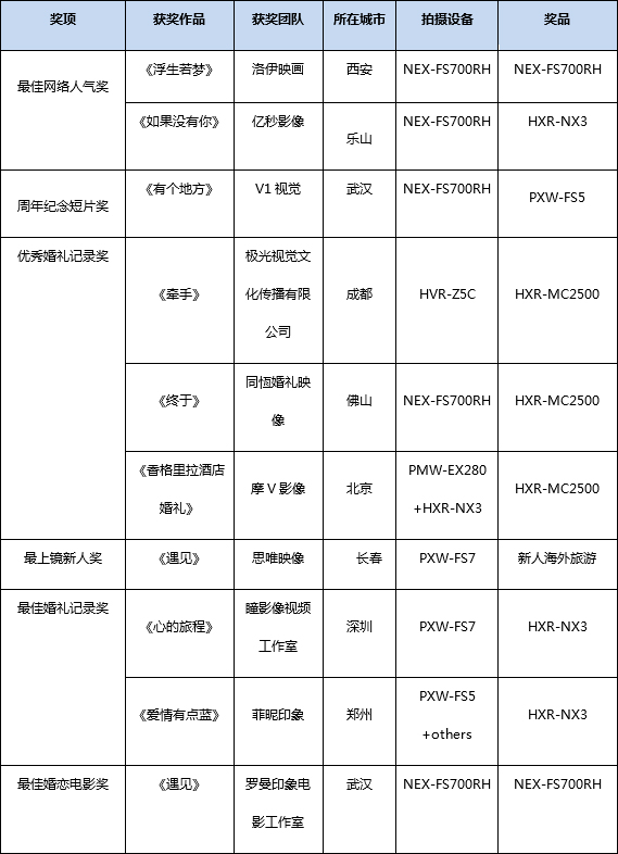 第六屆“索尼杯”婚慶視頻大賽獲獎作品名單
