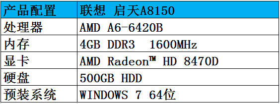 聯想啟天A8150在功耗和性能上性能表現是有目共睹的,而說到這里我們著重了解一下其采用的處理器AMD A6-6420B,該處理器內置了AMD Radeon? HD 8470D核心顯卡,其在3D性能表現方面完全可以比肩獨顯。此款專門為商務機定制的APU,完全整合了傳統CPU和GPU的性能優勢,既有CPU在邏輯上和串行處理的優勢又具備出色的圖形和并行計算的長處,使用APU不需要依賴主流的獨立顯卡就可以流暢運行高性能的多媒體應用。