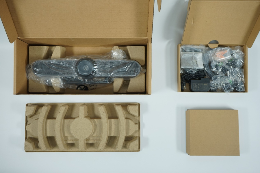 拆開包裝,攝像頭主體有特制的支架保護(hù),配件則集中在一個(gè)小盒子里。