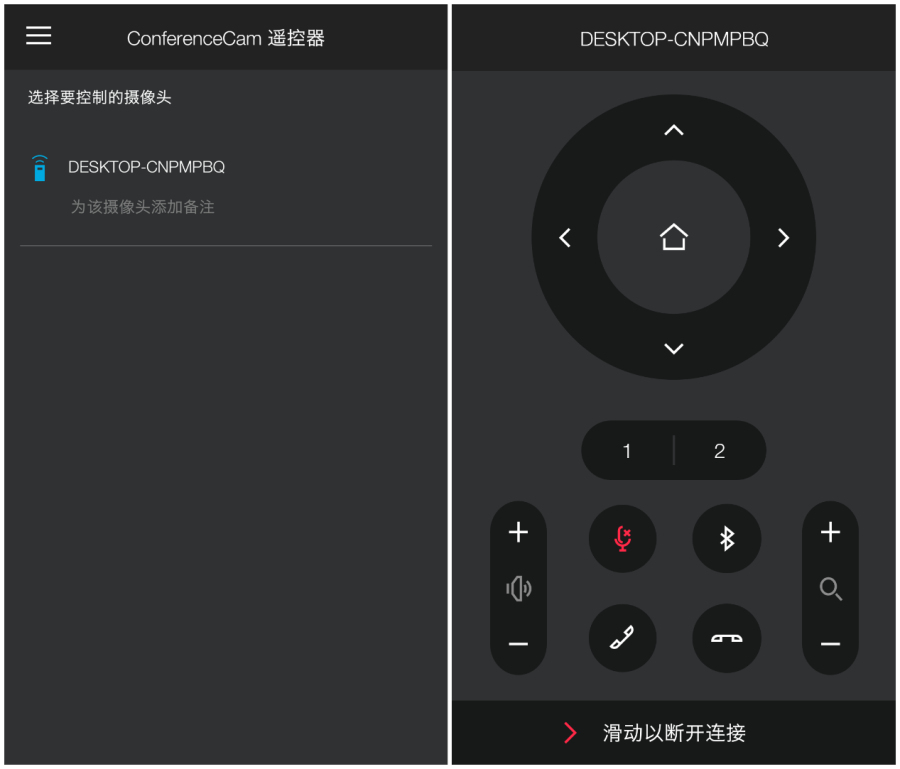 羅技CC4000e可以通過多種方式進(jìn)行控制,包括遙控器、桌面端控制軟件和手機(jī)端控制軟件。