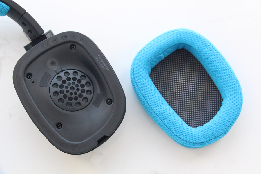 全包耳設計的耳罩,搭配網面材料舒適度適中,頂部減壓海綿佩戴感也不錯,兩個耳機的可旋轉角度也比較大,適應不同的佩戴方式,也能旋轉至平鋪狀態方便攜帶。