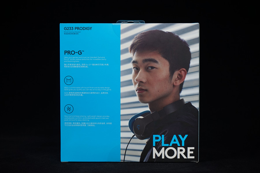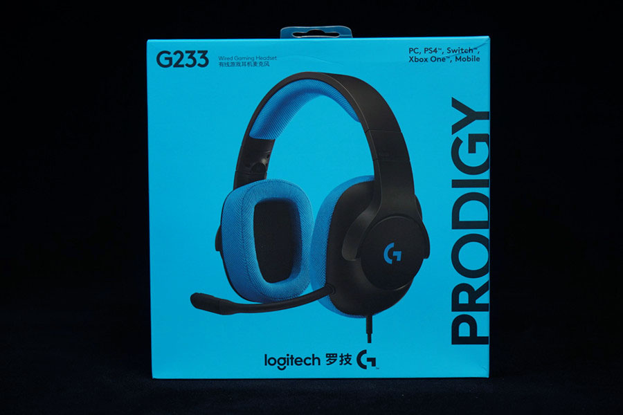 G233的包裝正面比較簡潔,羅技特有的藍色打底,搭配有產品的型號標識、品牌Logo等,同時,作為這個產品的特色,羅技G233在右上角標明了支持的多個游戲平臺:PC,PS4TM,SwitchTM,Xbox One,Moble。