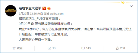 而對于國內玩家來說,絕地求生的游戲體驗也是讓人叫苦不迭。由于吃雞的服務器架設在國外,國內玩家在體驗游戲時大多數網絡都不暢通,卡頓和延遲時有發生,而且服務器問題不斷,官微成天忙活著發服務器狀況公告。