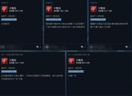 然而更令人難受的是,開發商藍洞公司在服務器優化上沒什么動靜,卻在《絕地求生》客戶端9月28日的更新補丁中加入了某游戲加速器的廣告,一下子點燃了玩家的怒火。Steam平臺上《絕地求生》這兩日收到大量差評,飽受玩家吐槽。