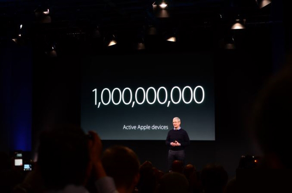 那就是截至目前全球活躍的蘋果設備已經(jīng)達到了10億臺!!在稍早一點的Q1財報上,庫克也曾表態(tài),iOS設備的總銷量已經(jīng)突破了10億。對于這個成績他們表現(xiàn)的相當?shù)靡夂妥院馈6衲甑?月1日,將是蘋果公司創(chuàng)辦的40周年,這是屬于蘋果人的狂歡。