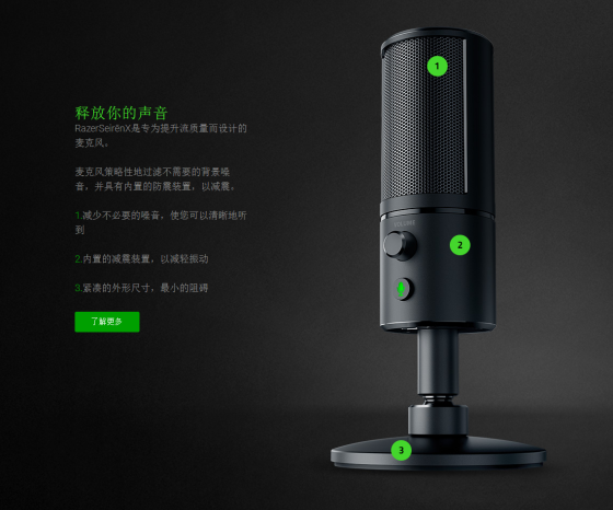 Razer Seiren X便攜式麥克風機械緊固以抑制振動的USB麥克風,自帶桌面支架和零延遲監控功能,有效消除音頻滯后。Razer Seiren X的海外售價也是99.99美元。