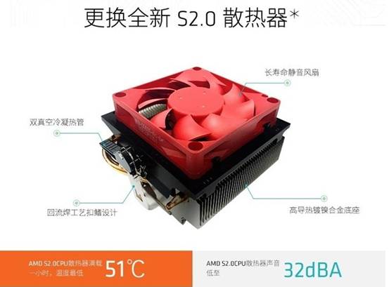 值得一提的是,AMD速龍四核870K盒包原裝風扇升級為全新的Silence2.0高級熱管散熱器。全新的Silence2.0高級熱管散熱器整體采用了回流焊工藝扣鰭設計,并使用雙真空冷凝熱管搭配大面積高導熱鍍鎳合金底座,全面提升散熱效果。再加上更大尺寸長壽命靜音風扇,讓Silence2.0高級熱管散熱器確保AMD速龍四核870K散熱效率的同時,進一步提升了靜音表現。