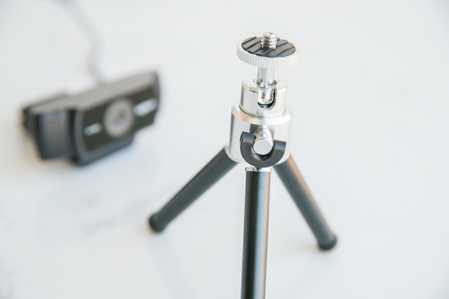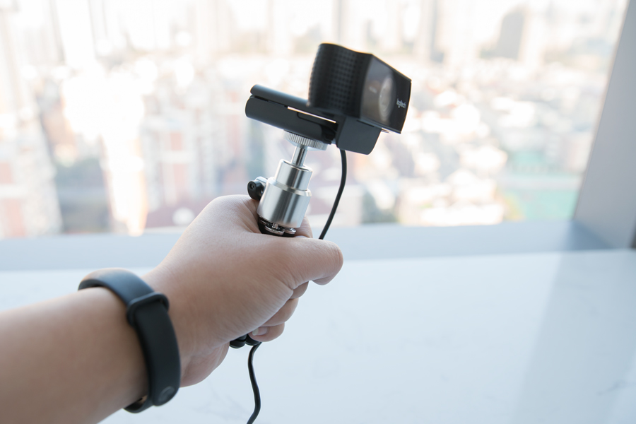 C922 PRO自帶的三角支架做工精良,大量使用金屬材質不僅更加耐用,而且壓低了重心增強穩定性。球窩接頭非緊固狀態下旋轉流暢,自如無阻,緊固狀態下非常牢靠,絲毫不會晃動。緊固旋鈕也有增加扭矩的環扣設計,方便用戶調整攝像頭。支架的云臺也有防滑膠墊,與攝像頭連接時非常穩固。