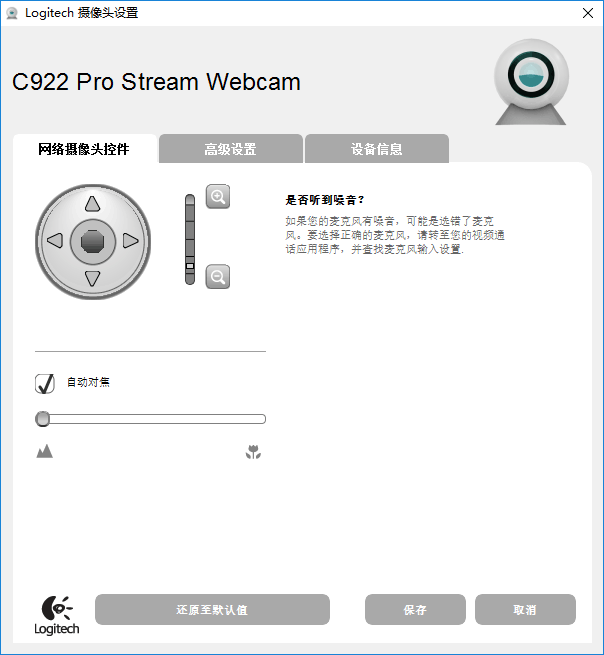 可輕松實現對Logitech網絡攝像頭特定設置(如變焦、對焦和圖像控制)的調整。功能比較簡單,也沒有特殊的功能和設置項,適合只是想安安靜靜用C922 PRO進行日常視頻聊天的用戶。