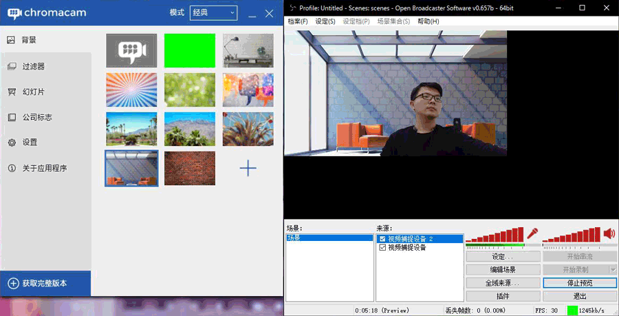 ChromaCam軟件可讓主播在直播時動態更換或者移除主播身后的背景。這一功能由Personify提供技術支持,