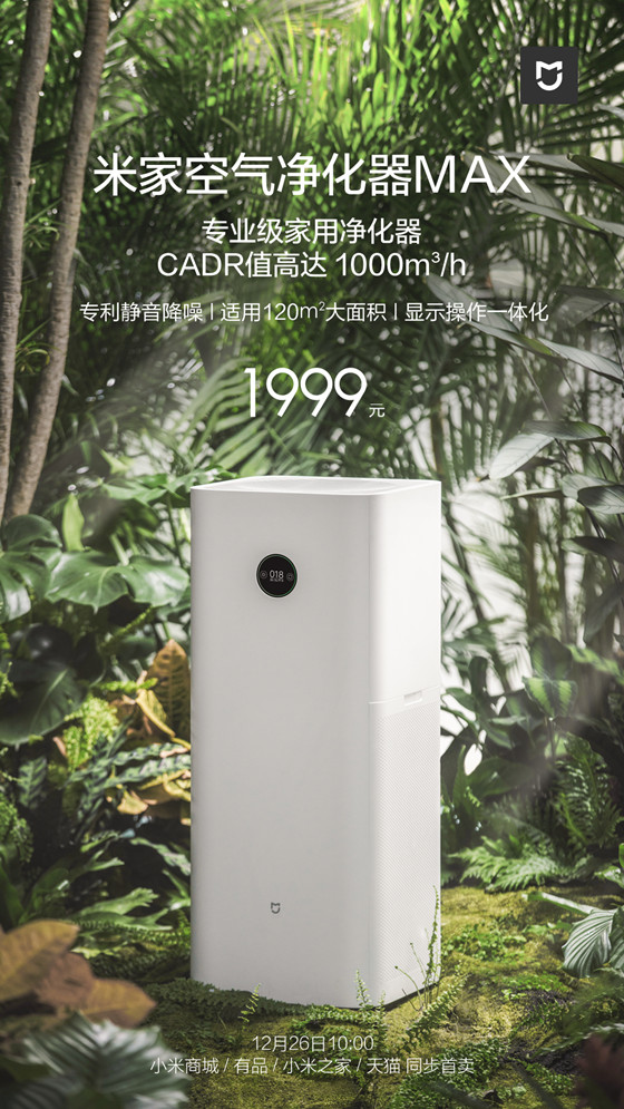 米家空氣凈化器MAX將在12月26日上午10點多渠道首賣,單從性能參數上將應該會比較火爆。