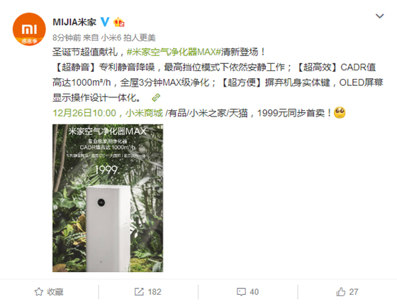 被暢呼吸逼急?米家空氣凈化器MAX上市 CADR值飆到1000!