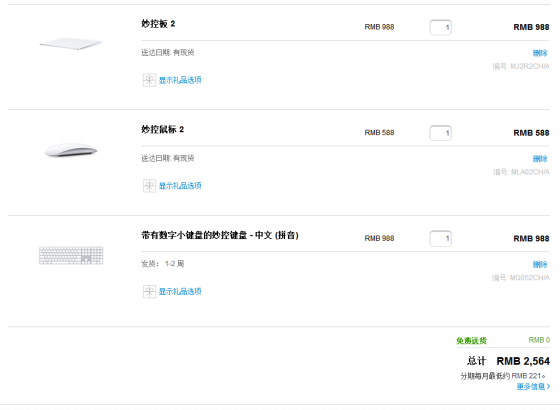 實際上,普通版的妙控鼠標2、妙控板2、妙控鍵盤三件套在國內售價加起來也不過2564元人民幣,在購買iMac Pro選購這幾個配件時價格也沒有比普通版貴多少。