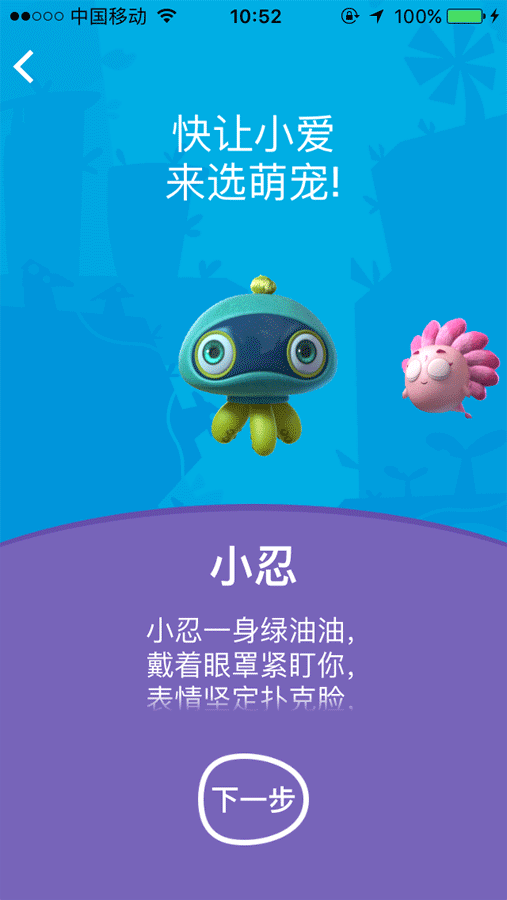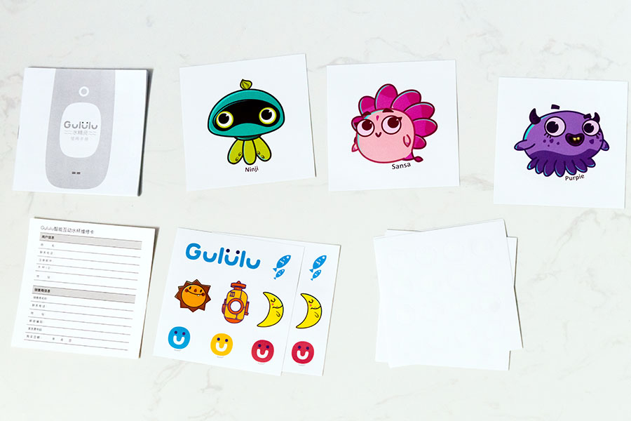 之后有3個水精靈小寵物給小朋友選擇領養,它們分別是珊珊、小忍和胖紫。在之后的更新系統中Gululu會陸續推出更多的水精靈給孩子們的選擇,確定選擇了其中一個水精靈后,達到十級后才可更換新的角色。選完水精靈后就可以開始好玩的拯救星球任務了,并且水杯的包裝里面還有這三個水精靈的可愛貼紙哦。
