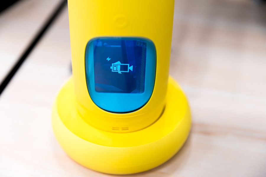 水杯正下方的圓形按鈕,長按圓形按鈕后即可開啟顯示屏里的內容,圓形按鈕下放是透明硬塑罩里的顯示屏和喇叭,同時Gululu還配備了一個圓形的無線充電座,iphone 8無線充電底座也可兼容使用。在系統有內容更新時,水杯可以在充電的同時自動更新,使水杯的內容和玩法更加豐富多樣。