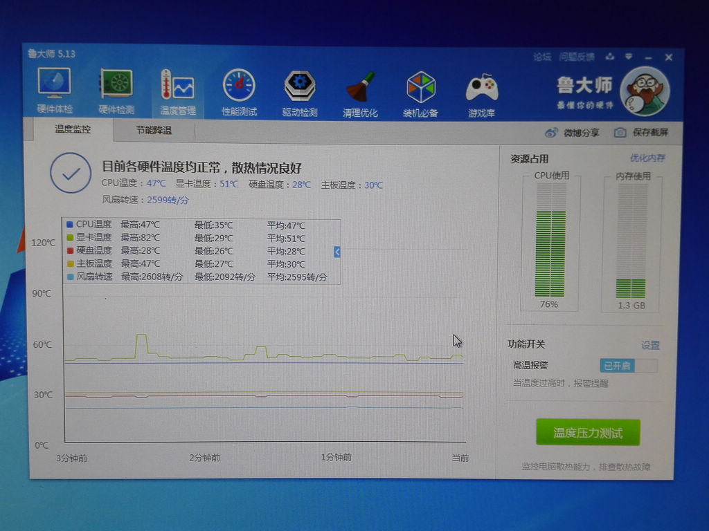 從上面的魯大師溫度壓力測試成績對比可以看出,憑借著新核心以及功耗優化的優勢,速龍四核845的滿載溫度僅為47度,而作為同系家族中的速龍四核860K卻是達到了67度。毫無疑問更低的溫度、功耗表現是速龍四核845的一大利器,再搭配準靜音S2.0風扇,速龍四核845為網吧業主打造一個舒適靜音的整體環境毫無壓力。