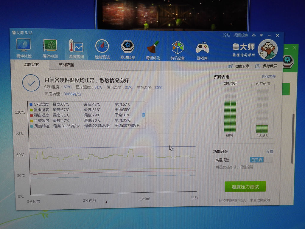 速龍860K溫度測試成績:67度(滿載)