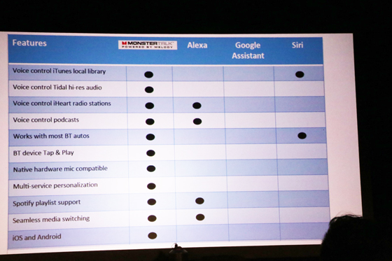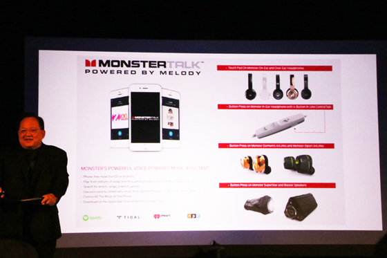 在發(fā)布會上,魔聲公司總裁Noel Lee上臺對多款新品進行了詳細的闡述,其中不僅包括藍牙耳機、藍牙音箱、運動耳機等硬件產(chǎn)品,還有MonsterTalk智能語音助手。