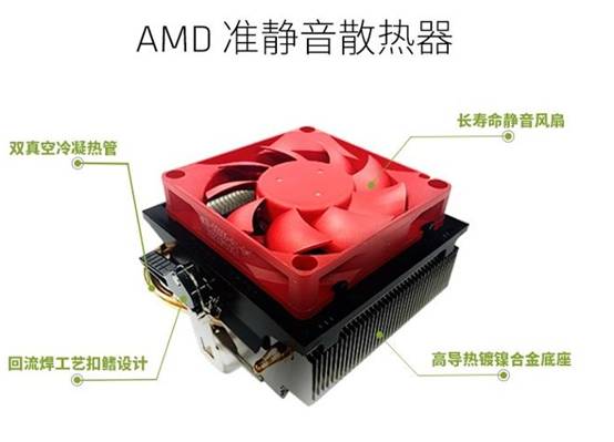 AMD將四核速龍880K盒包原裝風扇升級為Silence2.0高級熱管散熱器兼顧散熱之余保持靜音效果,是四核880K新版標配散熱器的最大特色。這款SILENCE 2.0高級熱管散熱器由知名散熱品牌酷冷至尊打造,使用了雙真空冷凝熱管和大面積鎳合金散熱底座的組合,可以全面提升散熱效果。與此同時,更大尺寸長壽靜音風扇的加入,也讓這款SILENCE 2.0高級熱管散熱器在確保散熱效率的同時,進一步提升了靜音表現。最后,新款SILENCE 2.0高級熱管散熱器整體使用了十分成熟的回流焊工藝+扣鰭設計,支持PWM溫控,確保散熱器經久耐用品質出色。