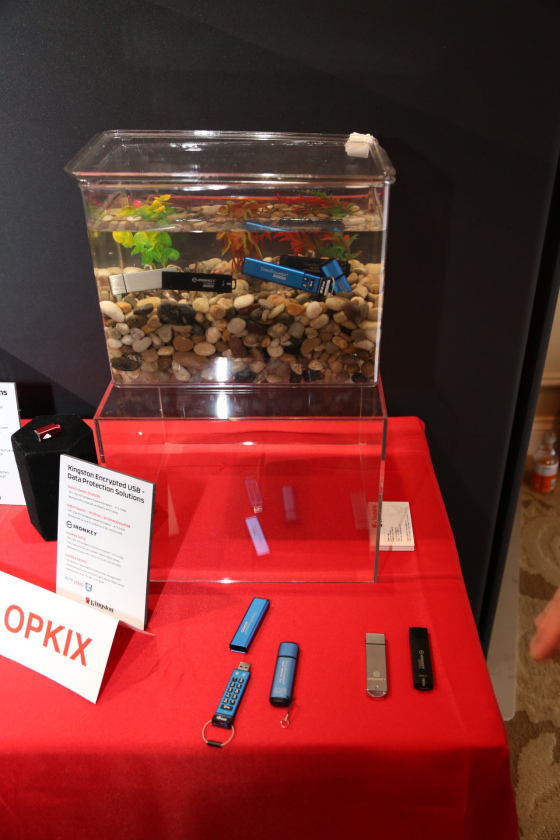 金士頓還在展會現場展出了多個防水的U盤產品,有的甚至直接在水里泡著,用戶大可對其防水能力放心。
