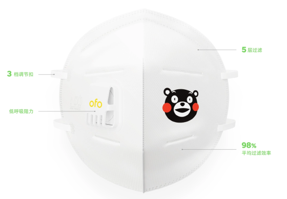 近日,錘子科技旗下空氣凈化類產品品牌暢呼吸宣布,聯合共享單車巨頭ofo推出熊本熊定制版防霧霾口罩。口罩上不僅印有暢呼吸和ofo的Logo,更有囧傻呆萌的熊本熊頭像,獨特設計非常吸睛。