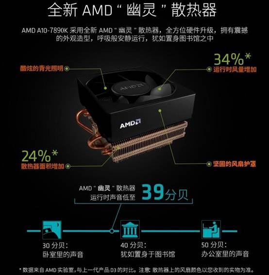 作為目前AMD APU系列王者地位的整合產(chǎn)品,A10-7890K在CPU與GPU頻率和性能上已經(jīng)達(dá)到目前的最強(qiáng)級(jí)別,性能相提升同時(shí),對(duì)功耗進(jìn)行了全面的優(yōu)化使TDP控制在95W的水平上。而最重要的革新是搭載的全新“幽靈”散熱器,在外觀設(shè)計(jì)性能方面可以說是做到完美的提升,效果方面甚至達(dá)到了市面上主流第三方散熱器的水準(zhǔn)。這一革新使用戶得到看得到實(shí)惠節(jié)約了預(yù)算獲得了良好的體驗(yàn)。這無疑是AMD送給廣大用戶的一大福利,更加詮釋了其“選擇AMD,得到更多”的真誠(chéng)理念。