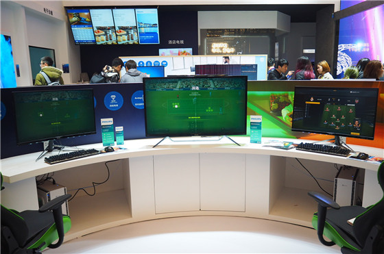 飛利浦展示了其32寸144MHz刷新率曲面電競顯示屏,以及43寸4k分辨率桌面巨幕電競顯示屏。