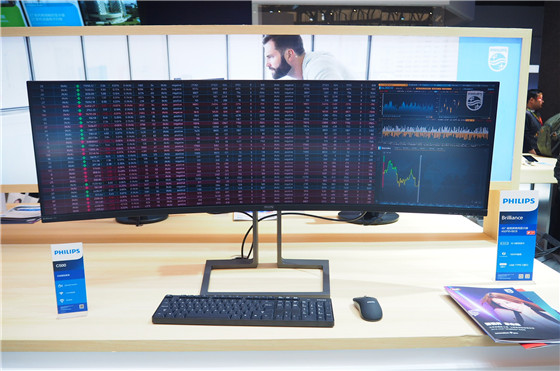 飛利浦展示了旗下的各類商用顯示器,其中的亮點是高達49寸的32:9超寬屏商用顯示器,效果令人震撼,商用價值巨大。