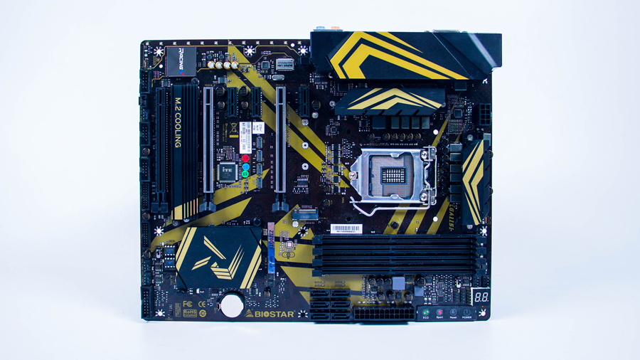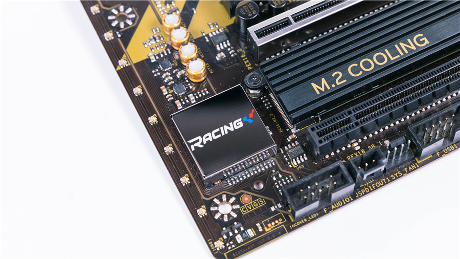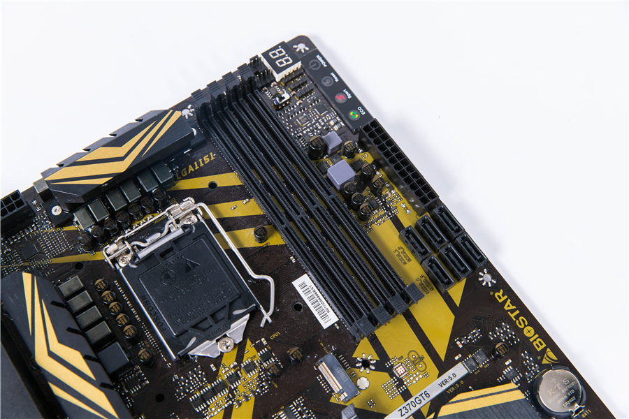 相較于上代的Z270產品線,映泰Z370GT6采用了更為鮮艷大膽的黑金配色。金色線條與黑色底色營造出了一種很“正”的競賽感,與“RACING”系列的定位十分契合。整體感覺既不浮夸,也不顯得平庸,可以說十分討喜。