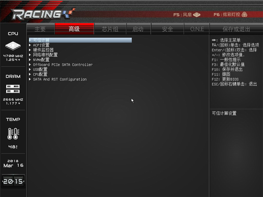 映泰的BIOS界面非常簡潔,CPU頻率溫度、內存頻率、時間等參數一目了然。具體的功能模塊設計非常細膩,超頻調節對于玩家來說不是難事。BIOS界面還可以切換到風扇與主板炫彩燈的控制界面,功能集成度相當不錯。