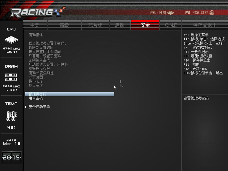 安全界面可以設置管理員密碼等選項。