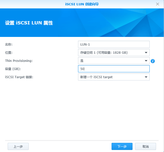 在存儲(chǔ)空間管理員中尋找到iSCSI LUN ,然后點(diǎn)擊新增。