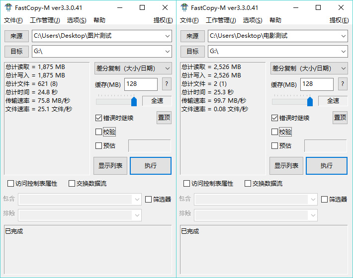 通過(guò)FastCopy測(cè)試圖片上傳速度為75.8MB/s,測(cè)試電影上傳速度為99.7MB/s。