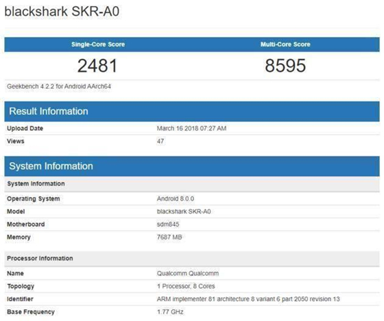 此前,黑鯊游戲手機的跑分數據便偷跑過。在GeekBench中,單核跑分2481,多核跑分高達8595。而在《絕地求生》手游的游戲截圖中,黑鯊游戲手機能夠運行超高幀率模式,超高清選項似乎暗示了它的分辨率至少有2K。