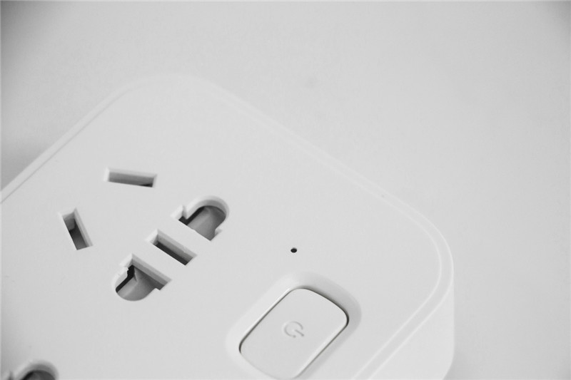 頂部白色按鈕是插座電源總開關。鍵程適中,按下去反饋力度很棒。