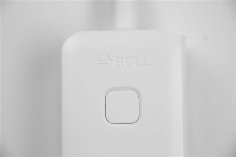 公牛魔方插座上方的按鈕同樣也是方正造型,按鍵清脆且表面具有指示燈效果。