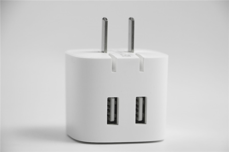 公牛自動防過充USB充電器,方正造型,十分小巧。兩個USB插孔,最大支持5V、2.4A的輸出功率。
