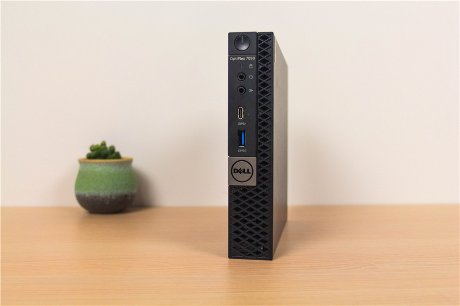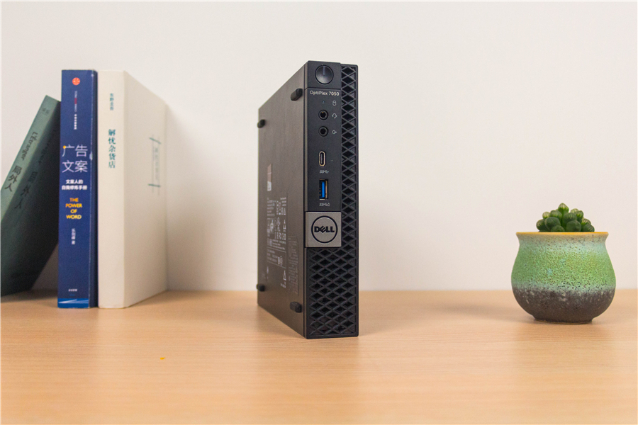 戴爾OptiPlex 7050給我們的第一印象就是小。它的三圍是17.8 x 3.6 x 18.2 cm,平放姿態時還沒我的小號鼠標墊大。拿在手里的第一反應是輕,僅有1170 g,這個重量比大部分的輕薄本還要輕。