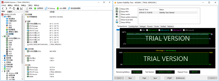 不過單看裝卸的難易也只能說明一部分問題,只有經過烤機的實測才能證明其散熱設計的優劣。我們使用AIDA64,單烤FPU 30分鐘,此時CPU核心平均溫度為84℃,相當穩定,一點也不危險。
