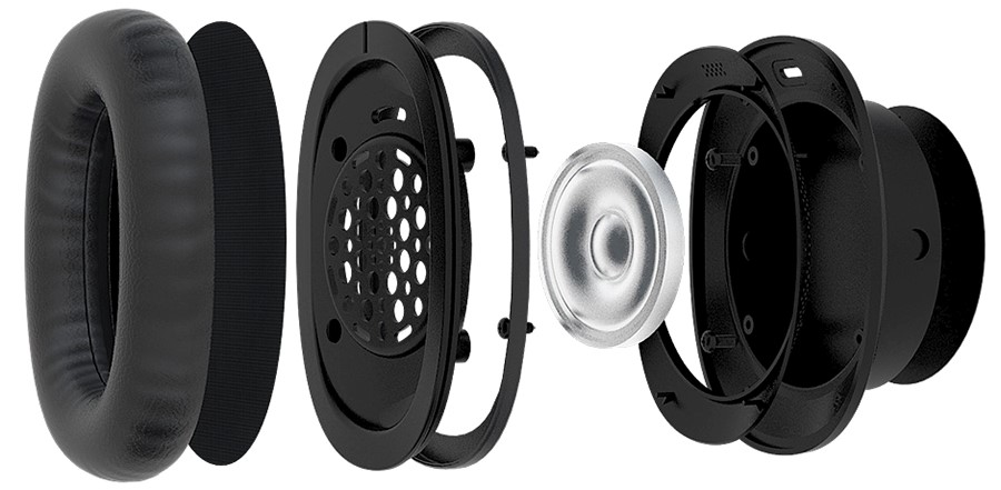 創新Sound BlasterX H5偏軟的鋁合金橫梁,讓腦部的壓力變得很小,耳罩方面采用了優質的蛋白皮記憶海綿耳罩和柔軟的人造革,十分柔軟,配戴十分舒適,發生單元也采用了傾斜式的設計,更加符合人體工程學,讓玩家徹底解放自己的耳朵。