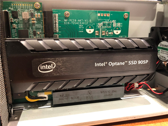 分享會后的媒體交流會上,英特爾首次展出了基于傲騰 SSD 905P的外置儲存產品。
