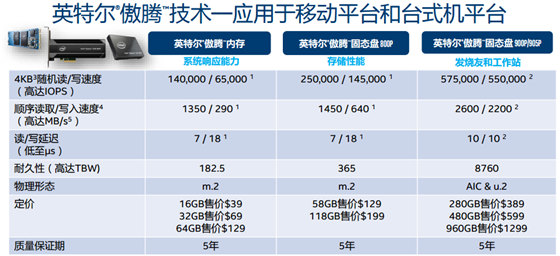 目前,英特爾已經建立起了完整而成熟的傲騰技術產品線,覆蓋了包括從個人到企業的各類用戶。
