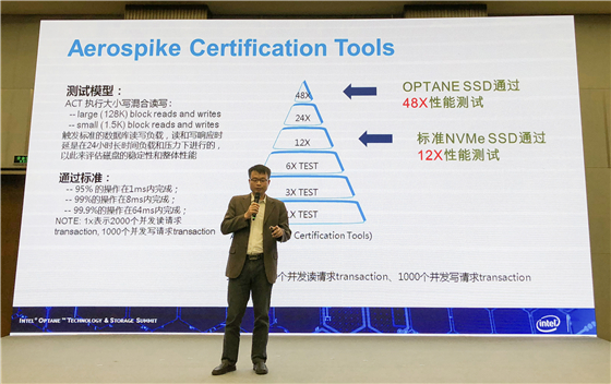 華為智能計算產品線 SSD業務總經理趙春輝先生在會上進行了主題為《新介質帶來的加速計算》的演講,對英特爾傲騰固態盤的性能進行了詳細的解析。